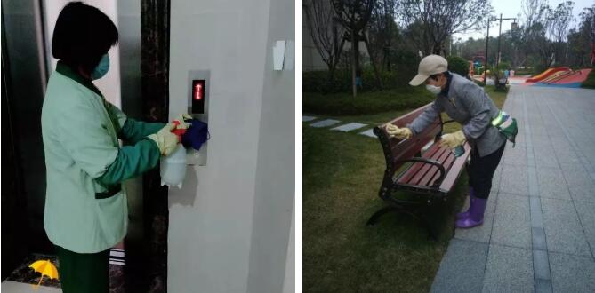 园区全面消毒消杀,覆盖出入门禁、儿童游乐设施、楼栋大堂、车库、电梯厅、垃圾中转站、下水道等关键区位,由物业统一进行集中定时、定点、定量的严格消毒。