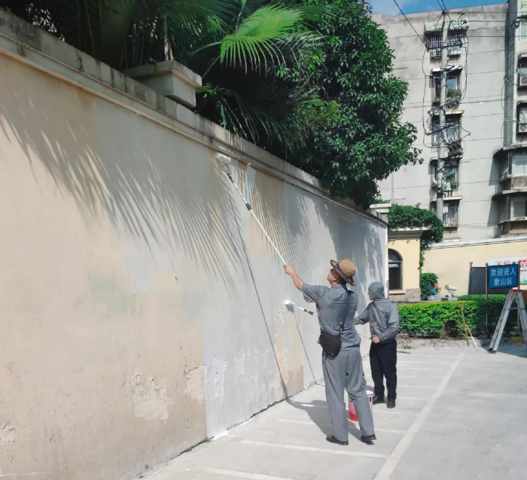 ▲兴进物业人对围墙进行重新刷漆
