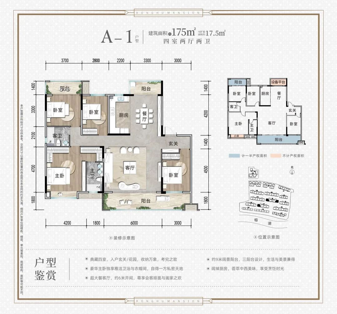 479席墅质洋房,17席湖畔别院,榕湖与桂林的同篇美丽画卷,仅为少数人定格。建面约97-173㎡经典三房、奢享四房湖居藏品级传世恒产,每一席皆臻贵。