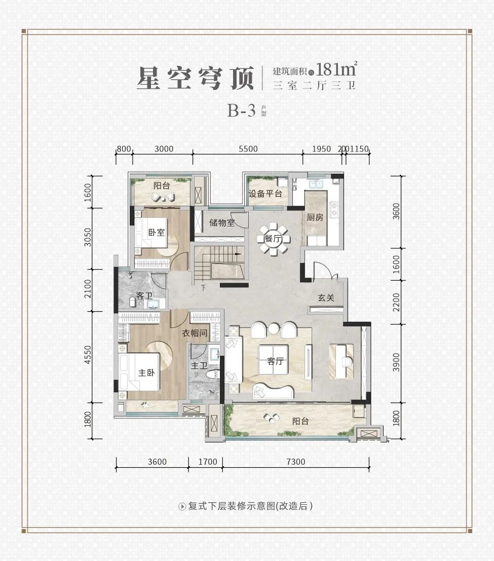 【星空穹顶】户型带给我们的,是空间层次与功能表现的迭代,也是生活全新享受的开始。让生活与期待共生,将调动情绪与情感满足的细节点缀其中,链接起心中最本真的生活乐趣。