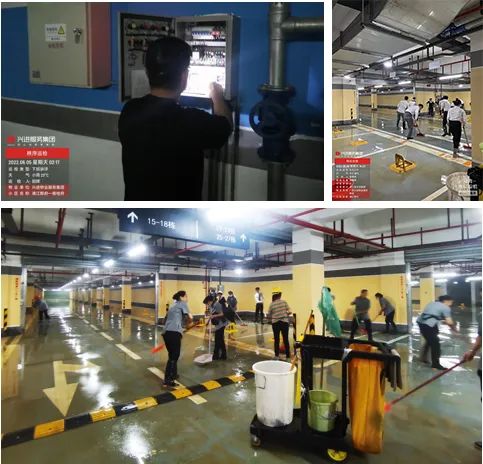 小区时刻监控市政路面及车库积水情况,若有内涝风险提前联系业主挪车,并做好了使用拖车为在外业主挪车的准备。巡查过程中发现某业主凌晨在外工作,家中车辆不能及时挪动,物业人员了解到情况后,4点冒着大雨驱车前往业主办公单位拿车钥匙,为业主爱车挪至安全区域,这一举措获得了兴进业主一致认可,最终确保了小区车辆0损失,0泡水。